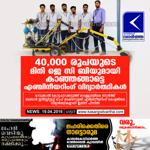 40,000 രൂപയുടെ മിനി ജെ സി ബിയുമായി കാഞ്ഞങ്ങാട്ടെ എഞ്ചിനീയറിംഗ് വിദ്യാര്ത്ഥികള്